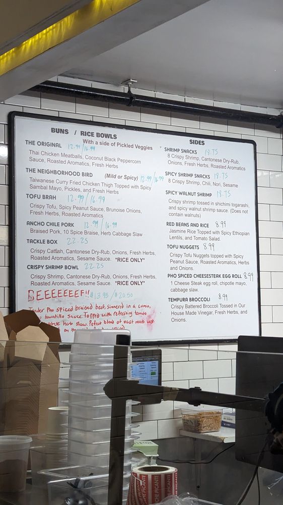 Introducing Ekiben, a vibrant restaurant located in Baltimore, MD, offering Asian fusion cuisine with a twist. Their menu features a variety of options, including the popular Neighborhood Bird Bun and the flavorful Tofu Brah. Customers rave about the generous portions of their dishes, particularly the crispy fried chicken and the refreshing Yuzuade drink. The restaurant prides itself on its use of fresh, quality ingredients and bold flavors. With options for vegan and vegetarian diners, Ekiben aims to cater to all dietary preferences. The casual atmosphere and friendly staff make dining here a pleasant experience. Whether you're looking for a quick lunch or a late-night bite, Ekiben is a must-visit spot for food lovers in the area.